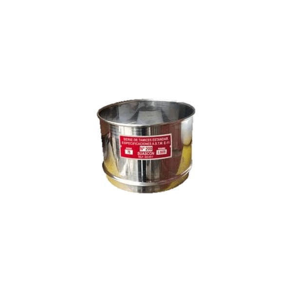 Tamiz para Lavado en húmedo de 8″ Ø Malla Nº 200, S.F en Acero Inox. Marca SUASCON.